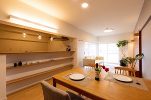ゆとりのあるキッチン、間仕切りをなくした開放的なリビング