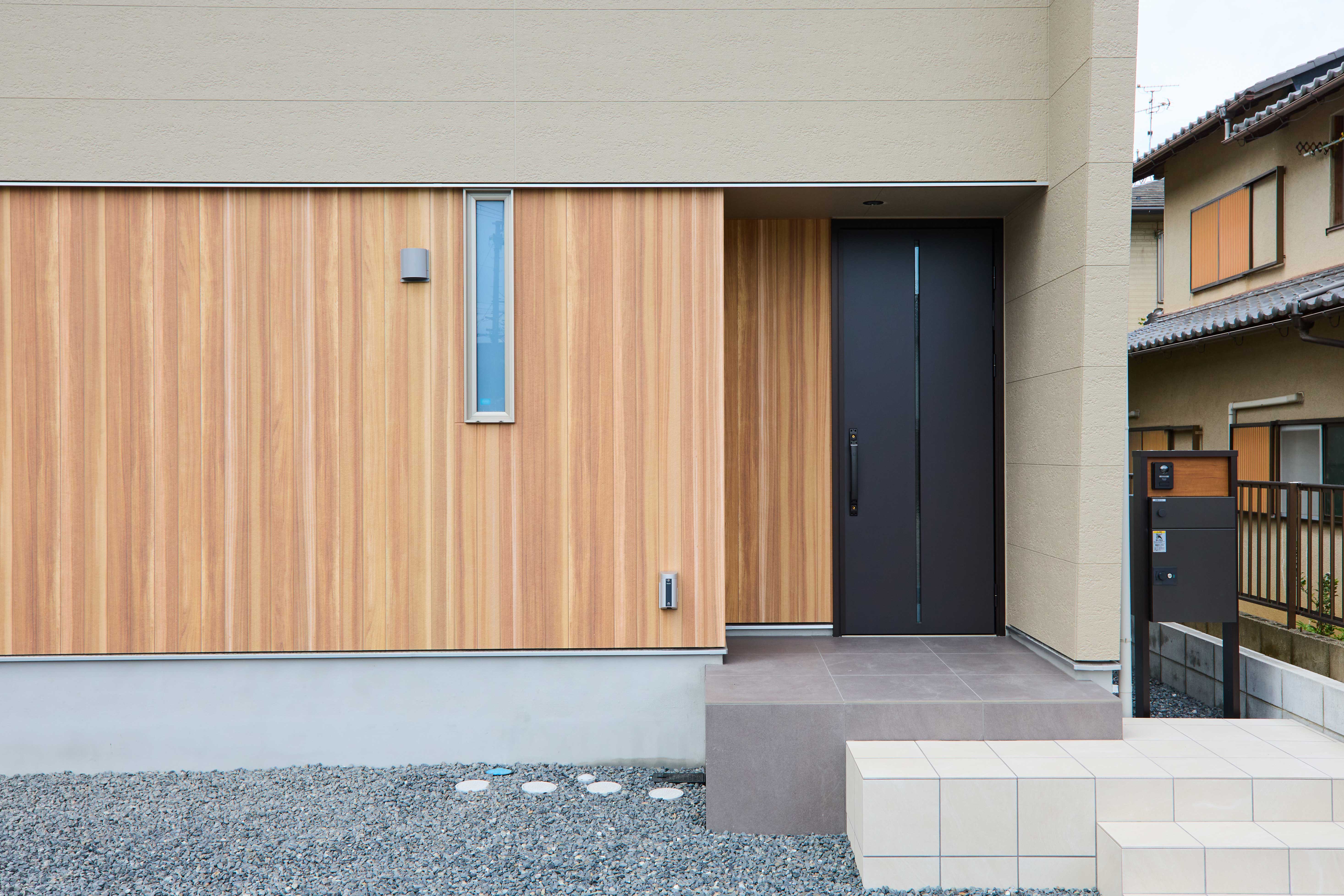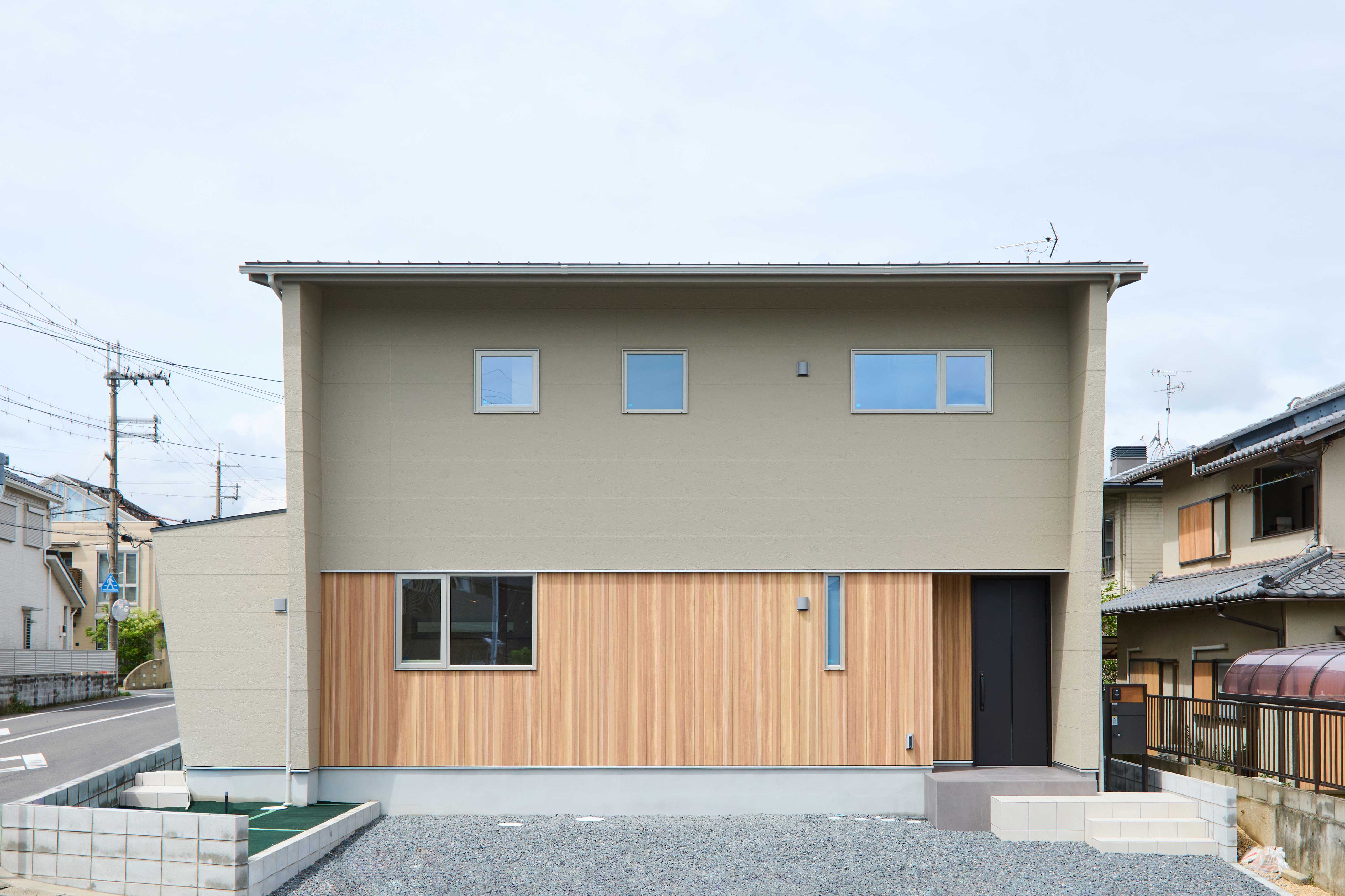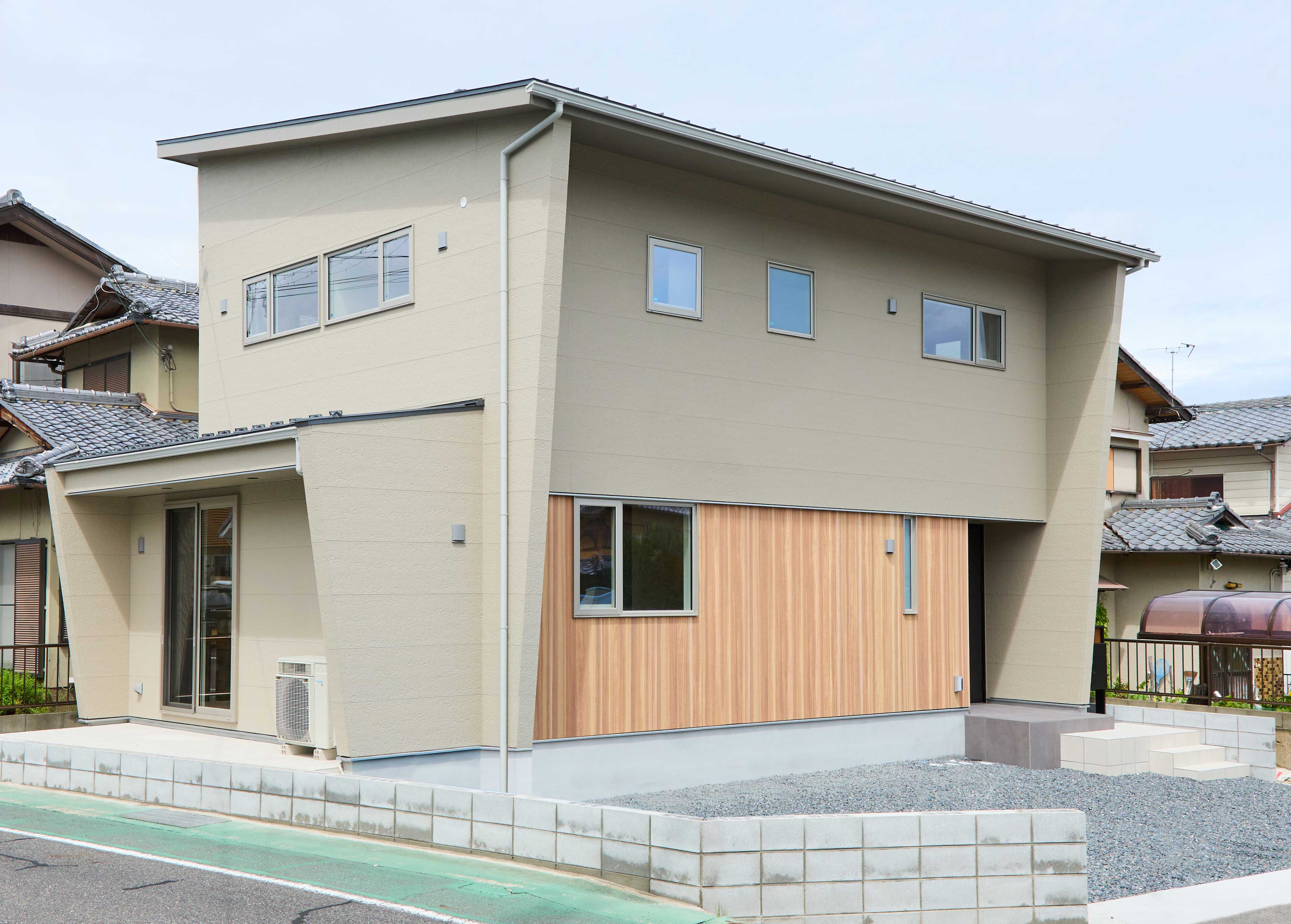 南東角地に建つ、シンボリックな斜めの外壁の家。