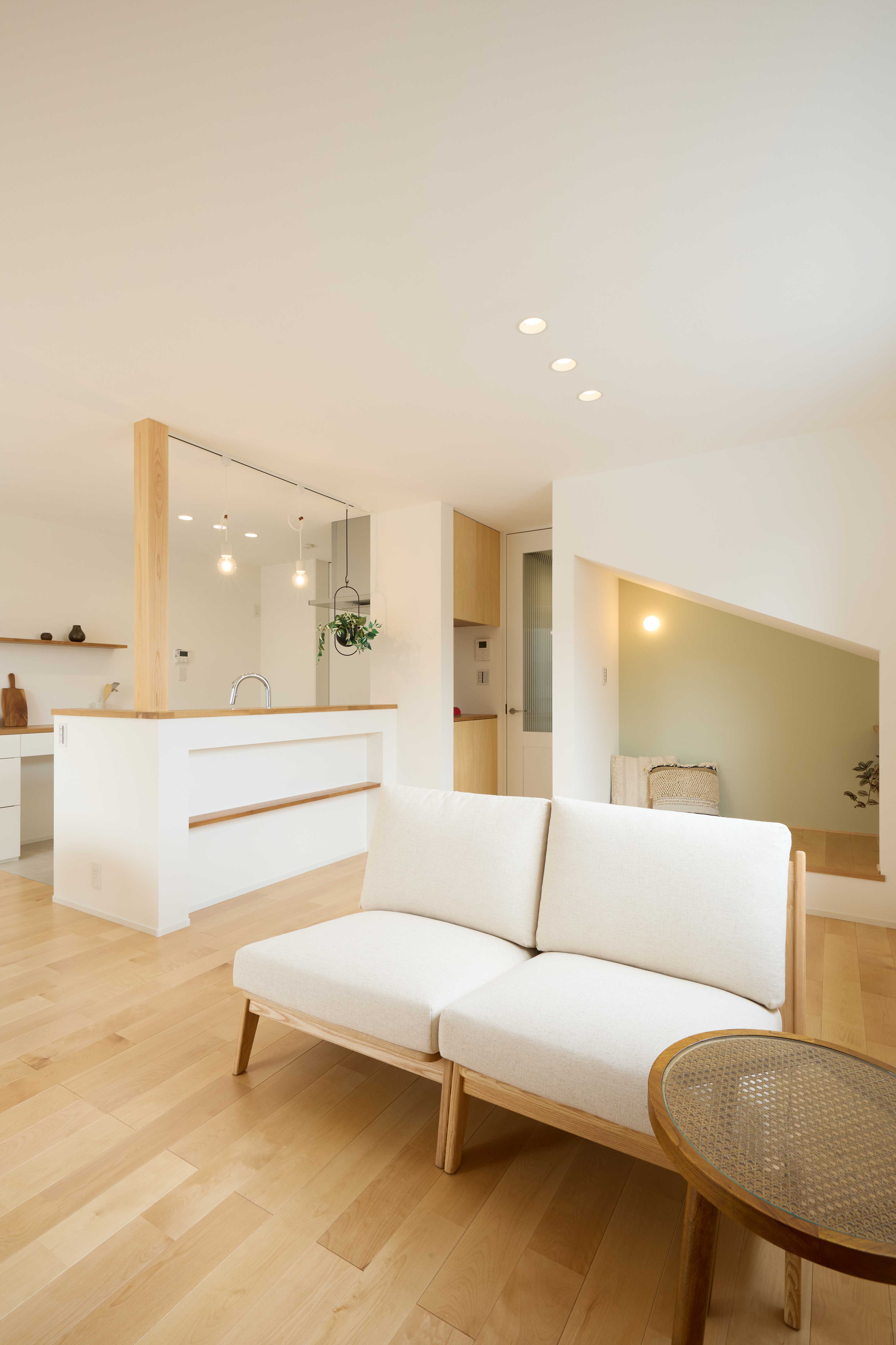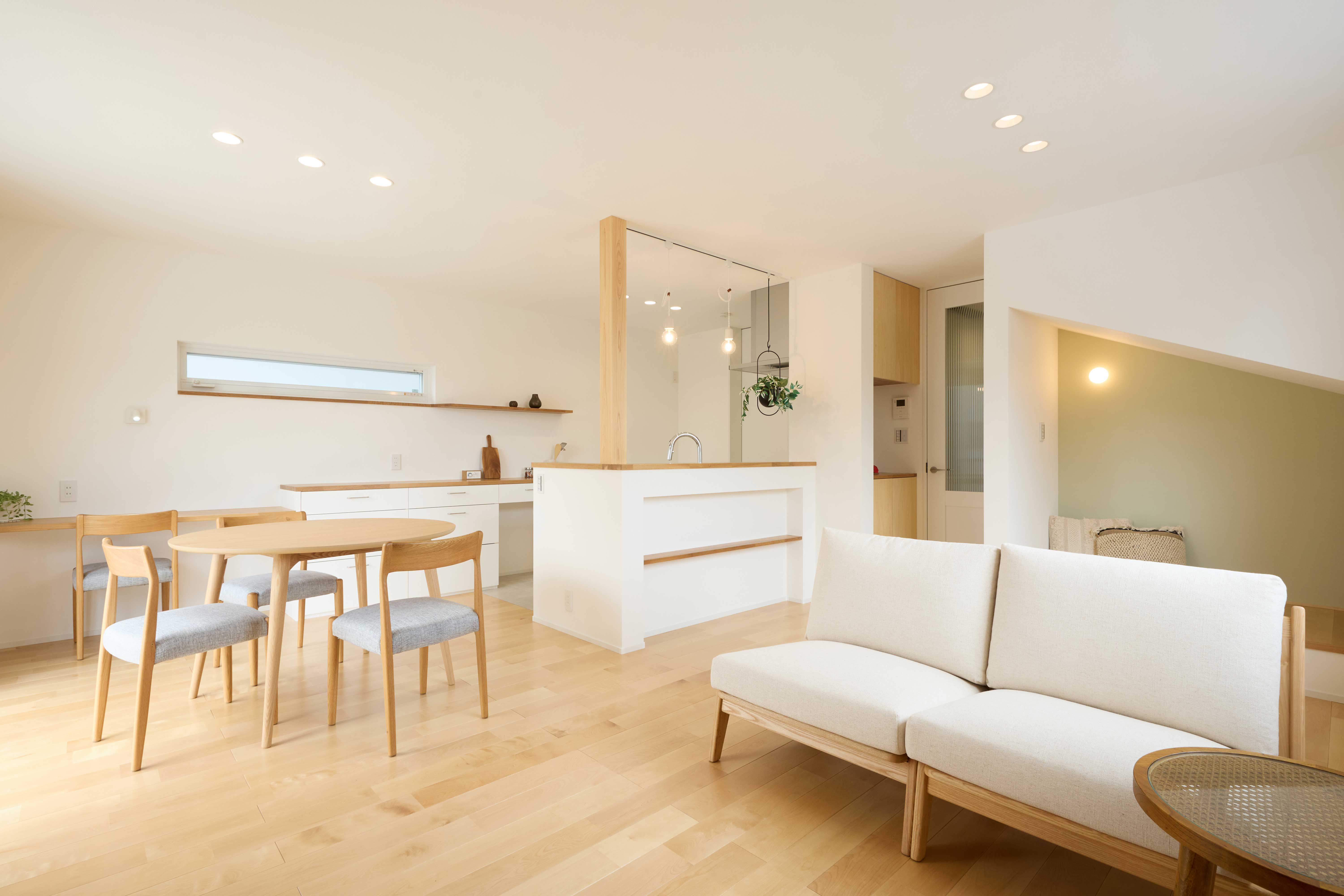 印象的な外観ですが、インテリアはくつろぎ感を何より大切に、飽きの来ないスタンダードなデザインでまとめました。