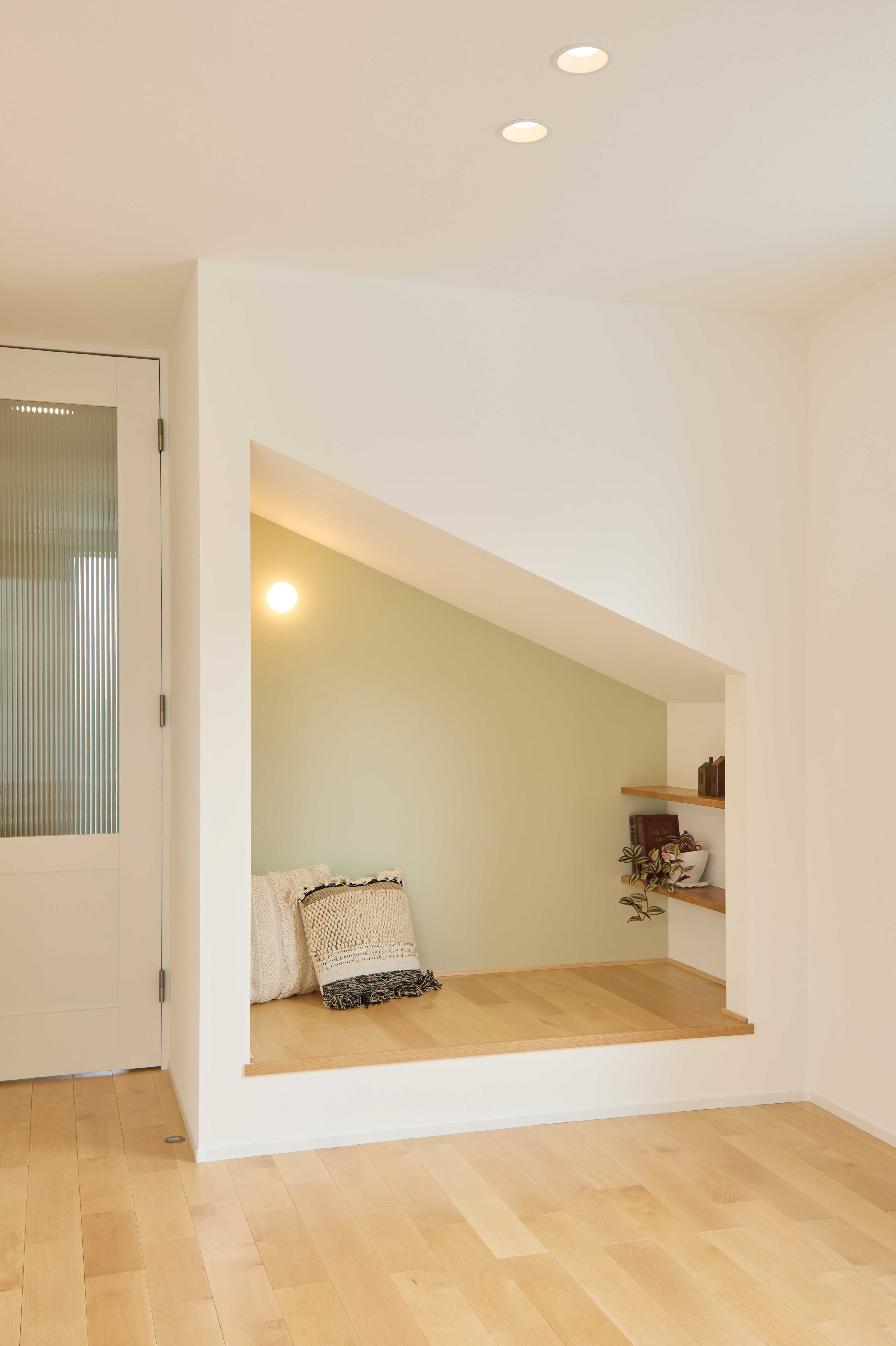 お施主さまには基本的な間取り以外に強いこだわりがなかったこともあり、ちょっとした遊び心のある空間をご提案することになりました。